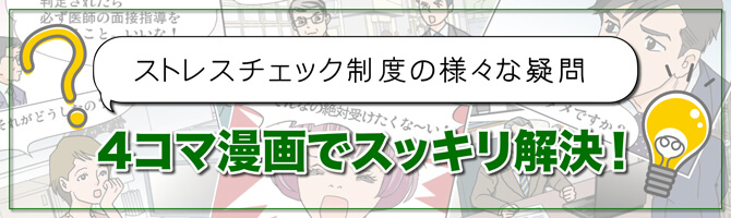 このコーナーでは、なにかとわかりづらいストレスチェック制度を、4コママンガで解説いたします!
