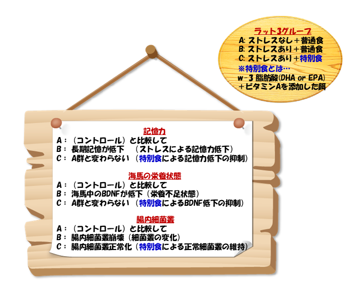しかし、特別食を食べていたラットは慢性ストレスを受けても、それらの異常が抑制されたのです。
