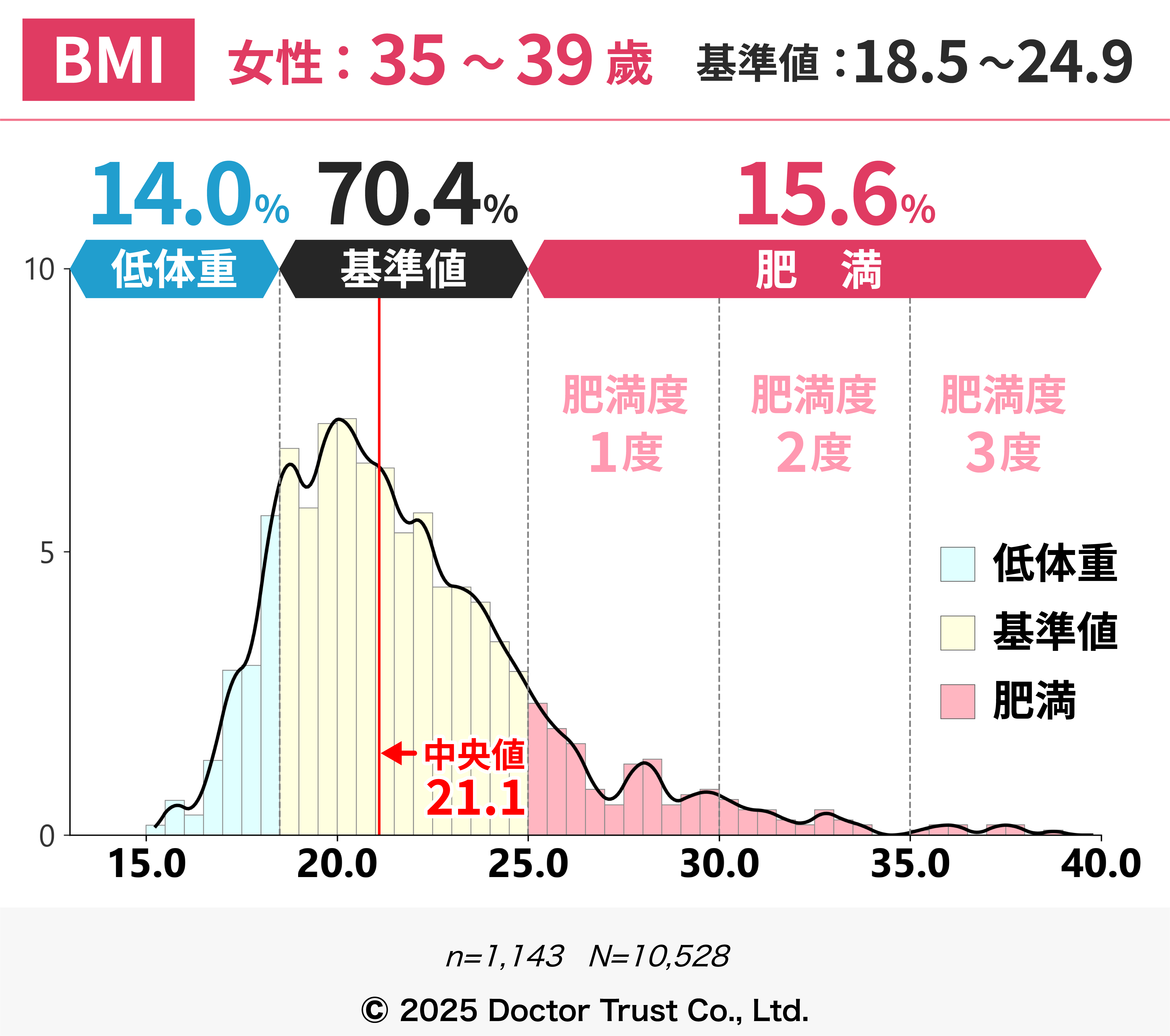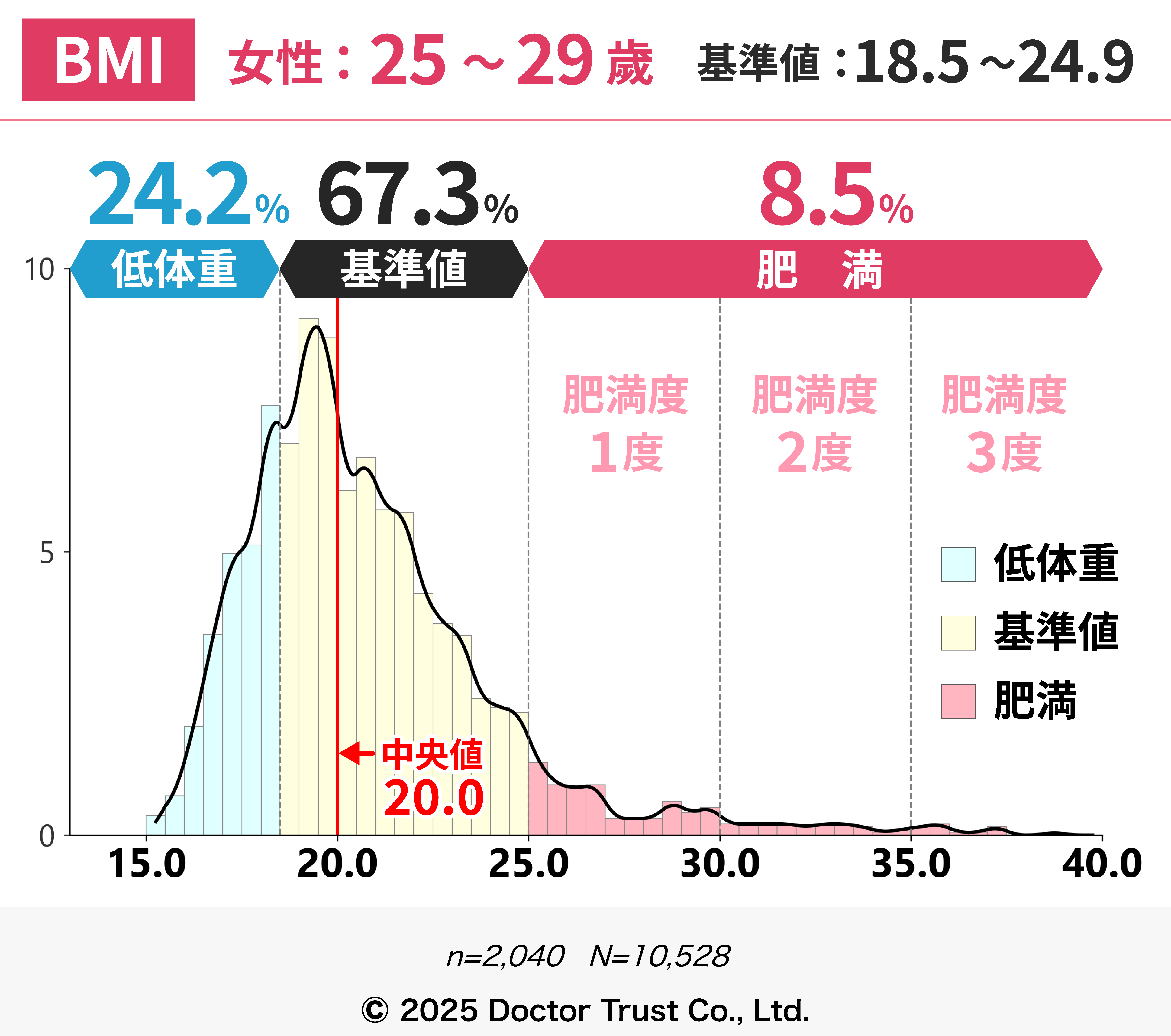 10~20代の若い世代では、約4人に1人が低体重という結果でした。