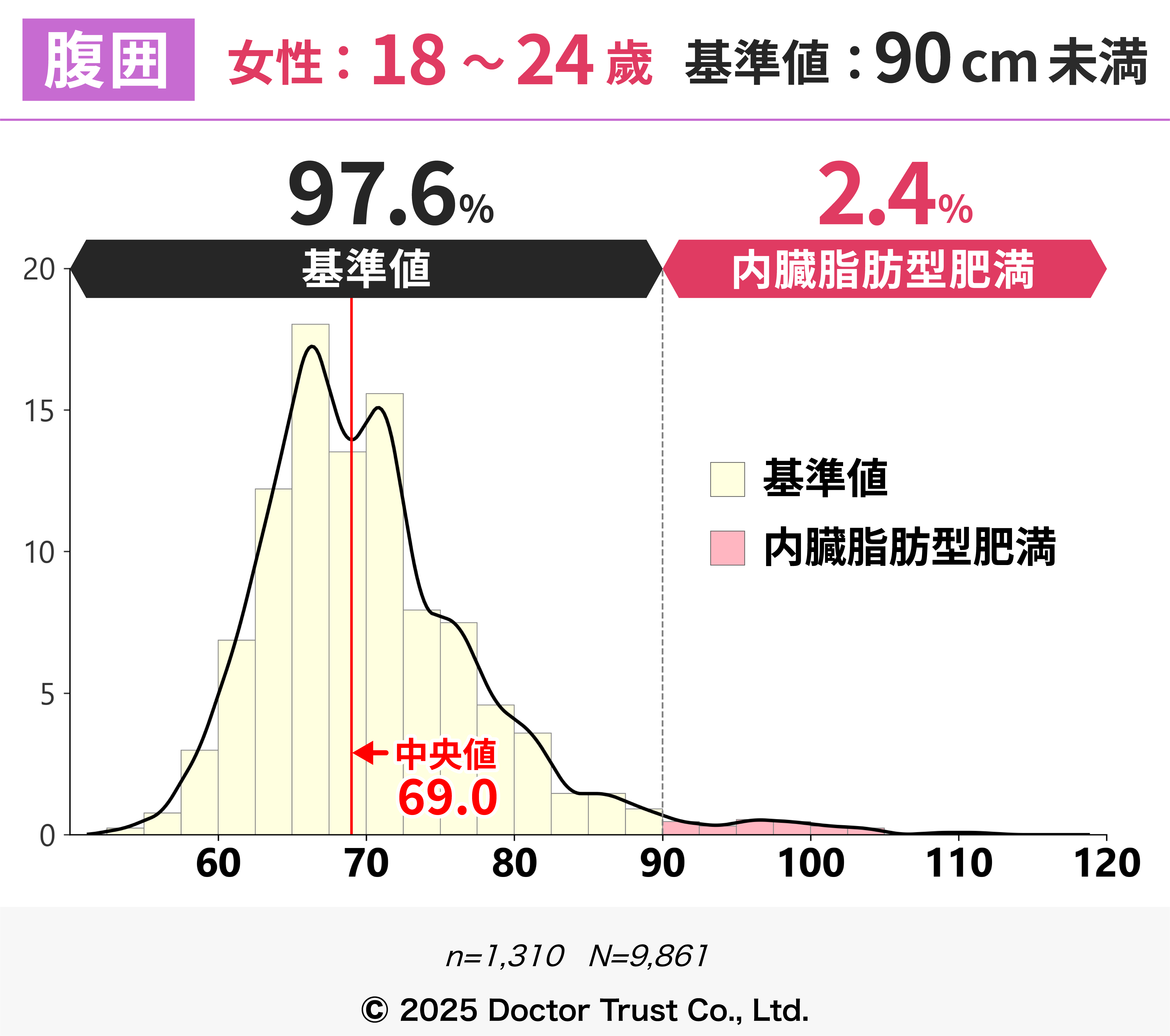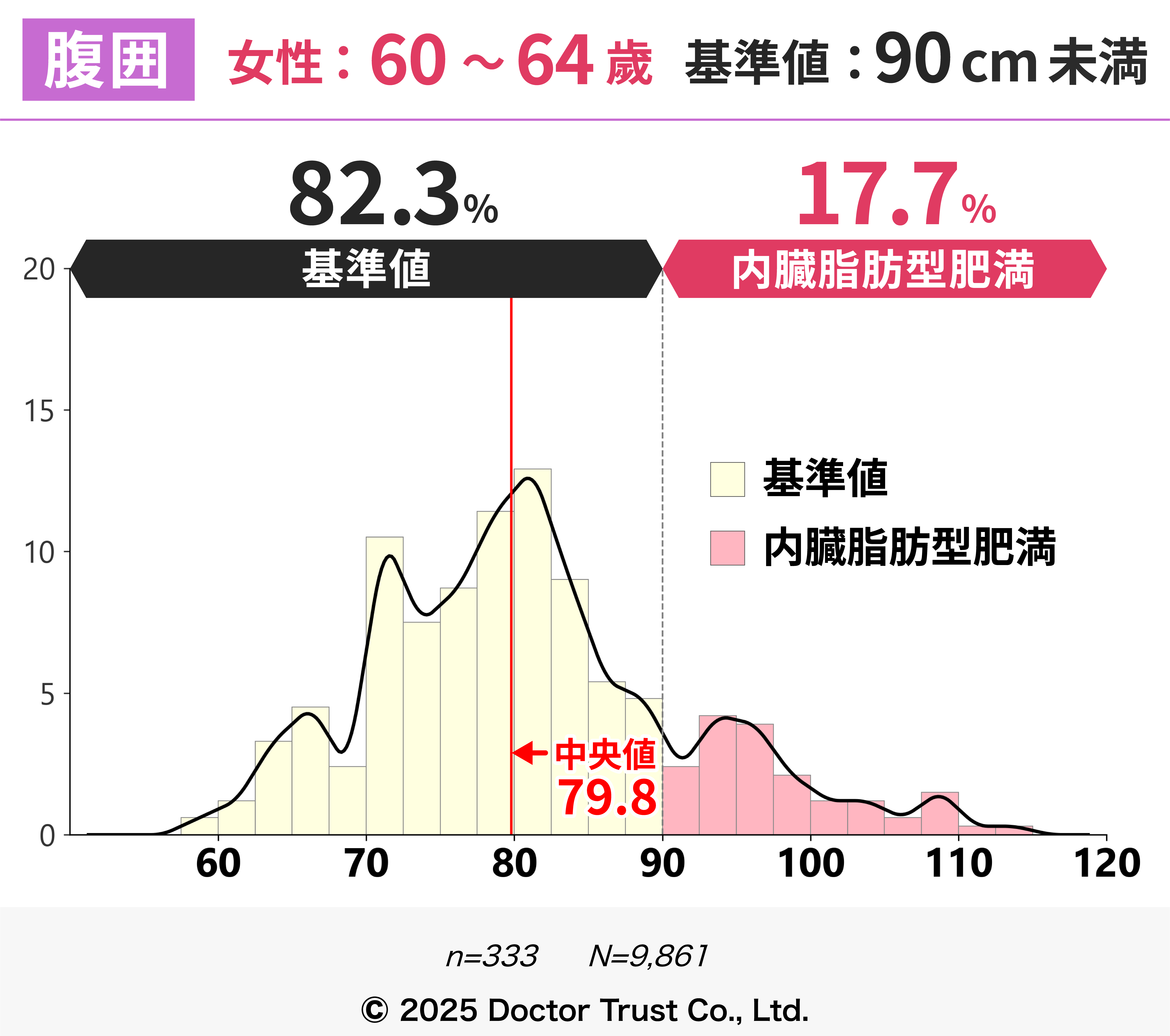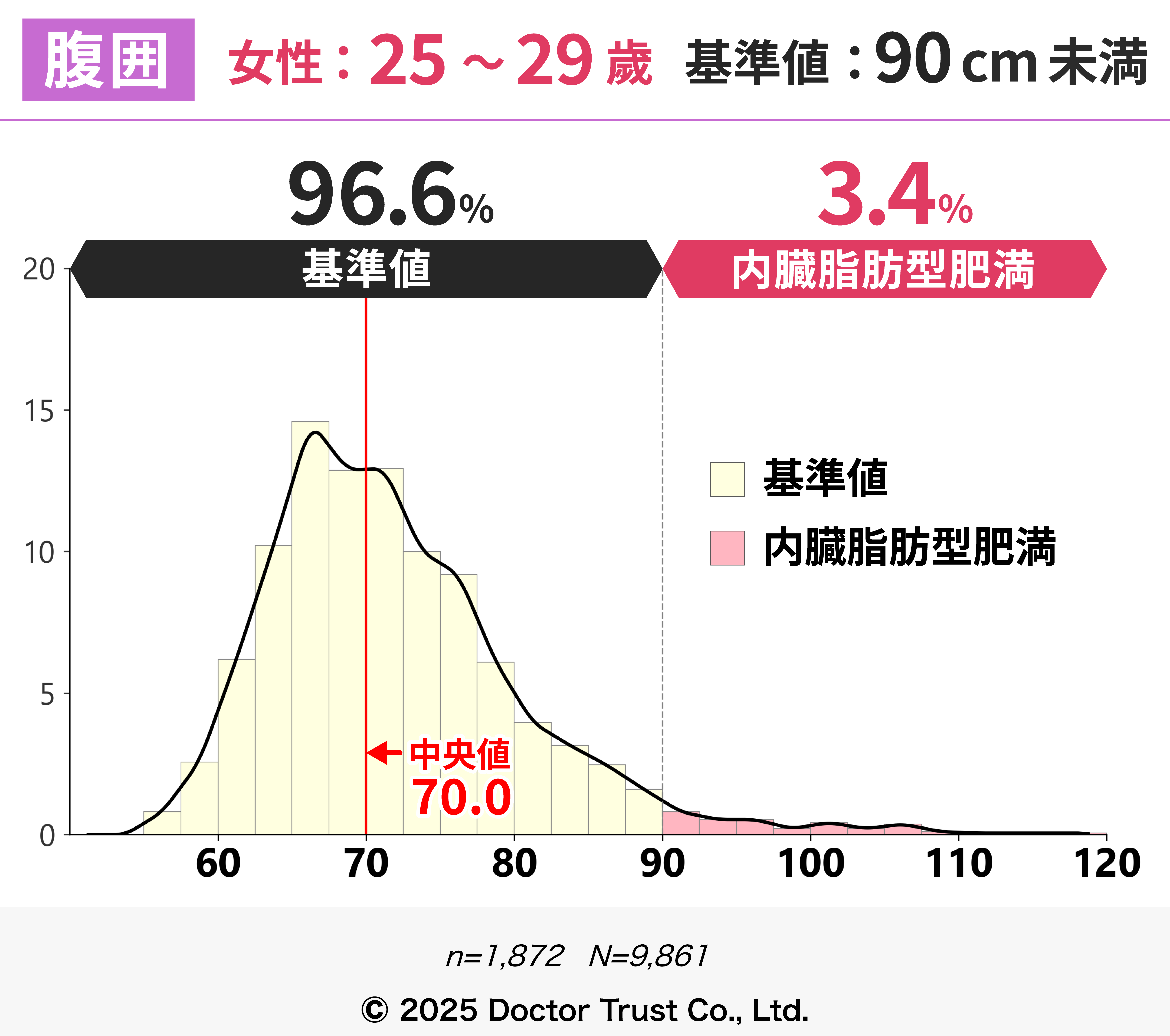 この年代から、内臓脂肪型肥満の人が増えているのがわかります。年齢とともに代謝が落ちてくるので注意が必要です。
