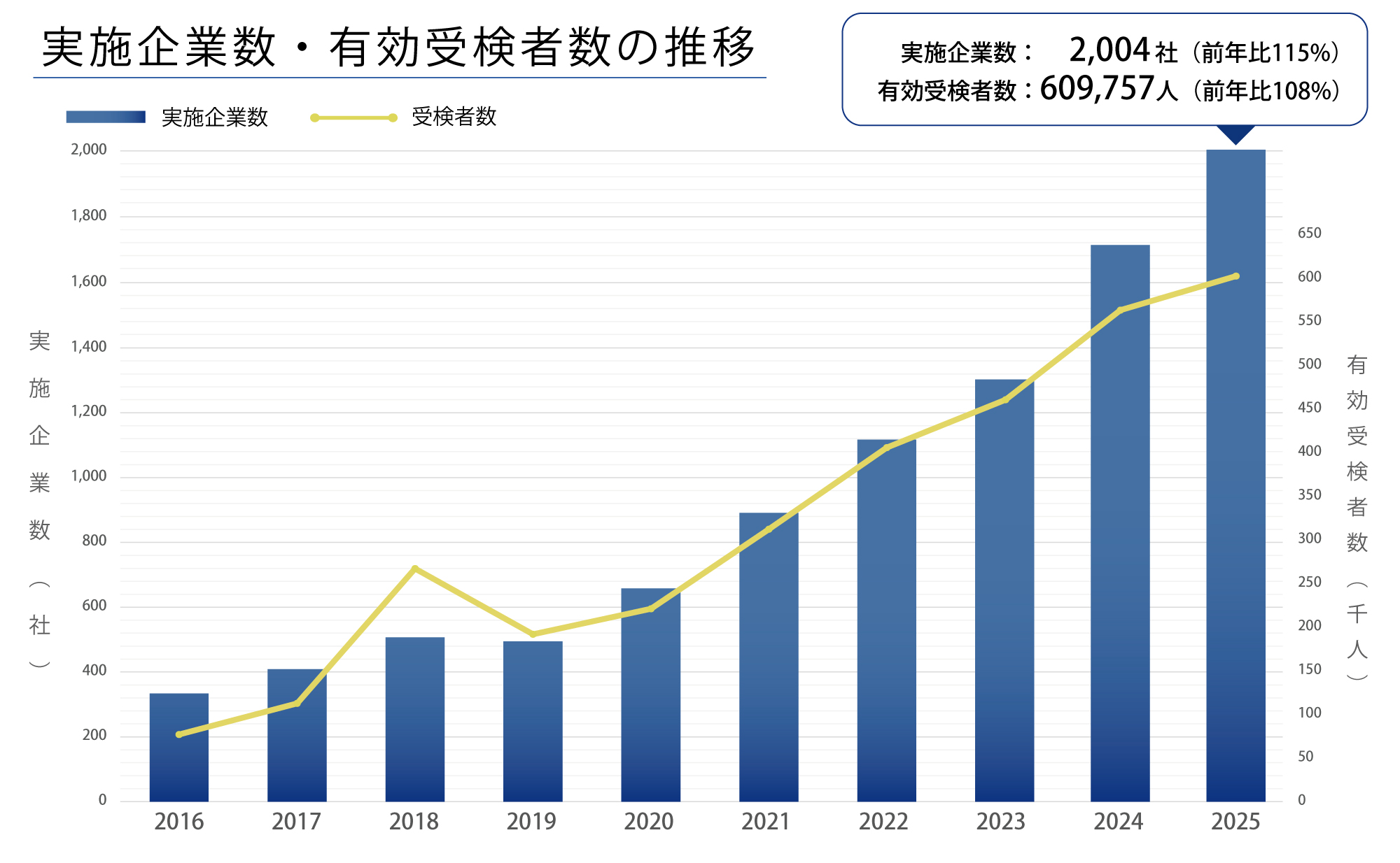 2025年は実施企業数も昨年比1.15倍となり、官公庁をはじめ、大手民間企業さまに多数ご利用いただいております。