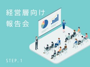 まずは、集団分析結果を基に経営層や管理職向けに集団分析結果報告会を行い、組織の現状を把握し、課題点の洗い出しを行います。