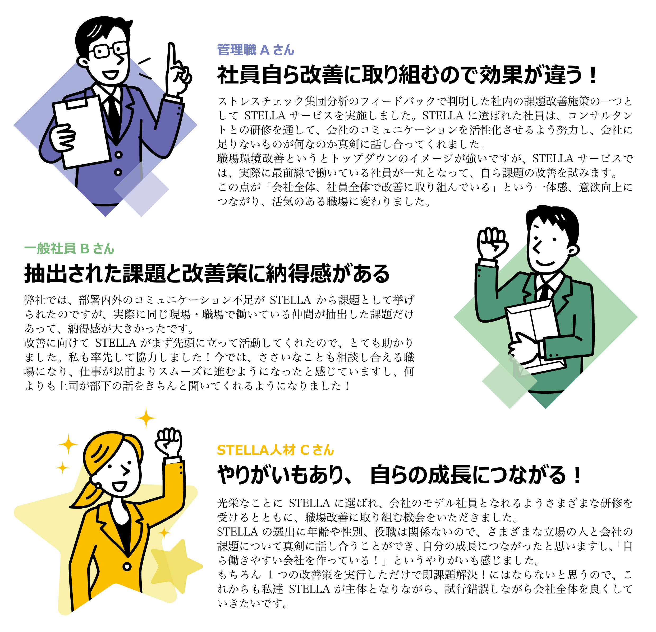 このページでは、企業に存在する職場環境改善の起爆剤「STELLA」人材と、ストレスチェックから始める職場環境改善策についてご案内いたします。