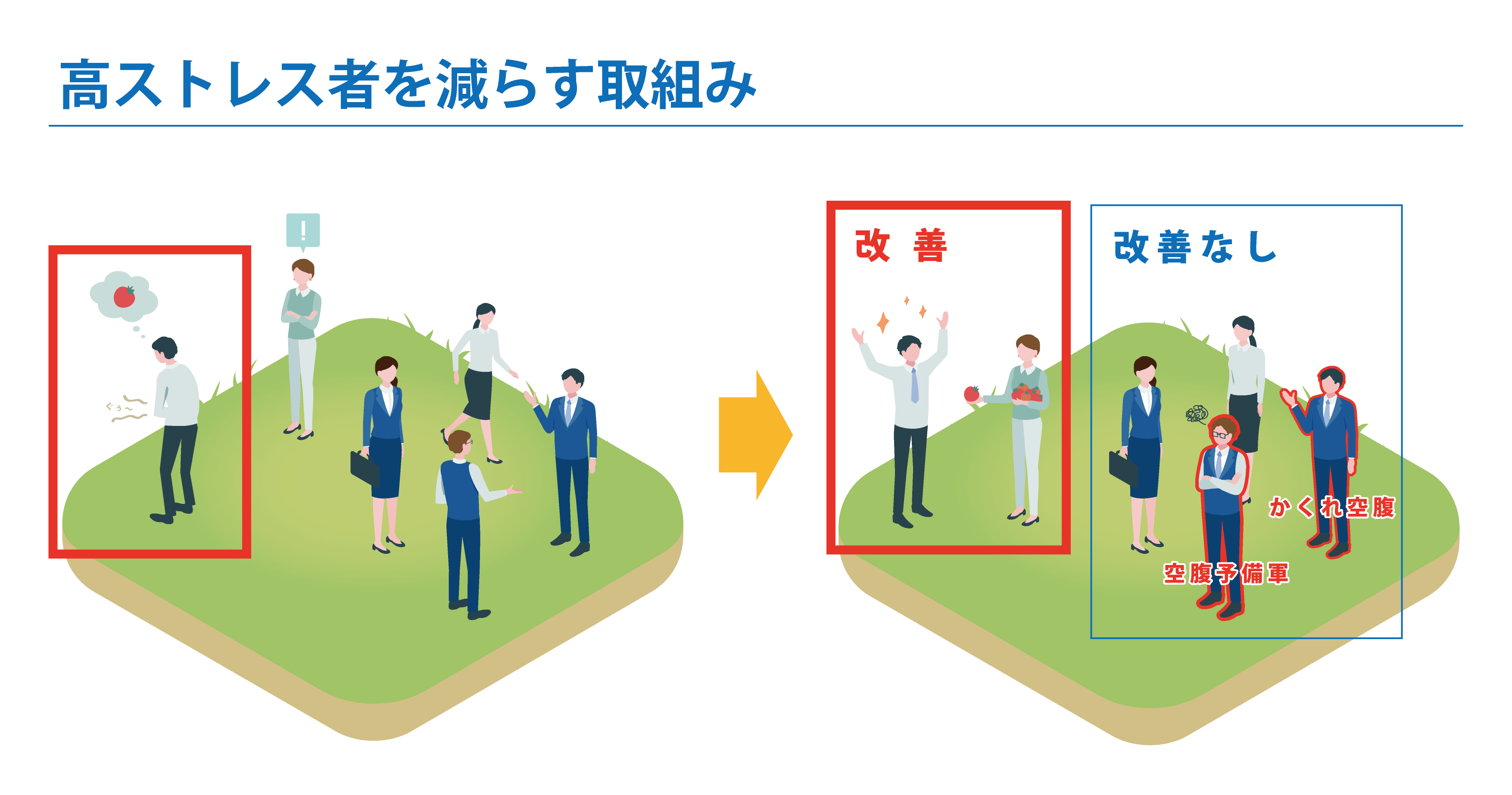 しかしこの方法では、一時的に高ストレス者を減らすことができたとしても、ストレスの要因自体は改善されていないため、また新たな高ストレス者が生まれてしまいます。
