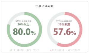 これまで「STELLA」の特徴や「STELLA」が多い職場と少ない職場の特徴を挙げてきましたが共通している点は、「STELLAは、仕事に対するエンゲイジメント(熱意・没頭・活力)や仕事への満足度が高く、STELLAが職場にいることでお互いを尊重し、建設的なコミュニケーションが充分に取れていること」です。