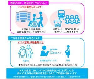 ただし、以下の場合は感染リスク防止や自身を守る観点からマスクを着用することをおすすめしています。