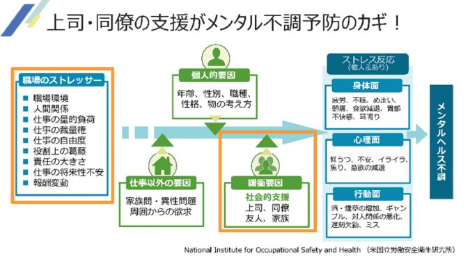 この職場の緩衝要因としての役割が、上司・同僚には求められます。