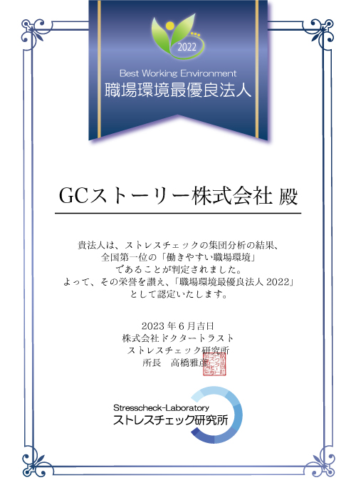 ドクタートラストのストレスチェック研究所では、集団分析結果からドクタートラスト独自分析によるTRUSTY SCORE(職場環境指数)が良好だった組織を、働きやすい職場環境であると判定しています。 2022年度にストレスチェックを実施した957組織すべての集団分析を行った結果、全国で1位の働きやすい組織として、以下13組織を「第2回 職場環境優良法人2022」として認定いたしました。