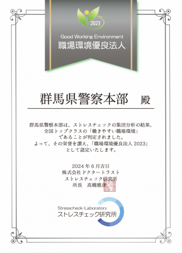 2023年度ストレスチェック集団分析結果から、働きやすい職場環境と判定された組織を表彰しました