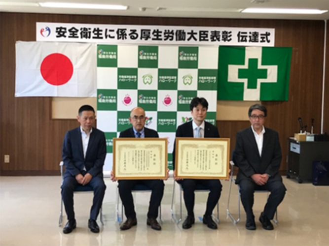 工場の労働安全衛生の取り組みは古くから評価され色々な表彰をいただいており、15年以上休業労働災害も起こしておりません。