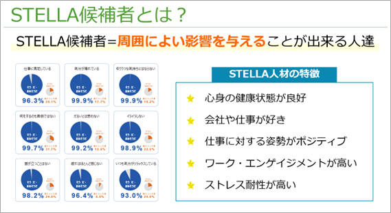 STELLA候補者が多い組織では、働きやすく、人間関係が良好な組織であるといえます。