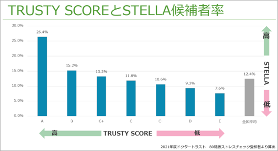 4. 【2021年度のストレスチェック全国データ分析 第5回】「TRUSTY SCORE」と各指標には関連があった?~TRUSTY SCOREとSTELLA候補者編~